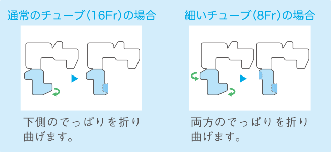 テープを90度回転させることで、左右どちら側のチューブでも固定することができます。