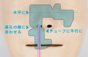 チューブの接触・圧迫は潰瘍の原因になるので、鼻翼から離して固定しましょう。