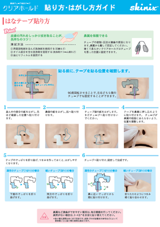 クリアホールドを使用した、はな・ほほへの上手な経鼻チューブの固定方法を掲載したPDF資料がダウンロードできます。院内マニュアル代わりに病棟でご活用ください。