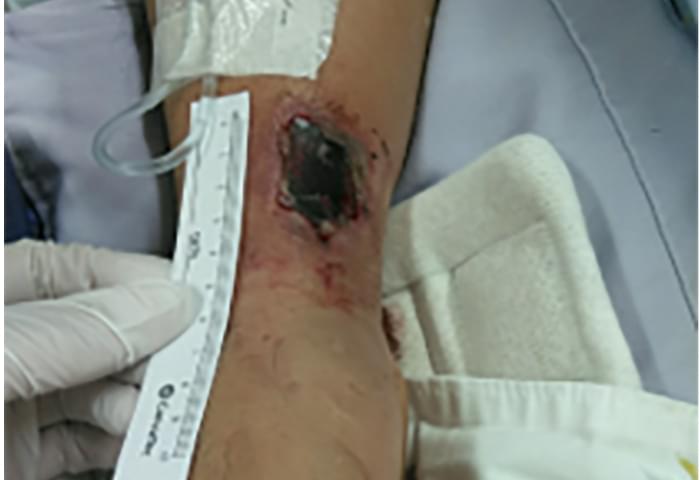 観察はしていたが、除圧はできておらず、約10日後、固定バンドを除去した際にMDRPUが発生していた。幸い、神経損傷等なく右手の手指の動きは問題なかったが、発生から治癒までに93日要した。